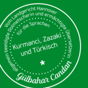 Gerne stehe ich Ihnen als beeidigte Dolmetscherin und ermächtigte Übersetzerin für die Sprachen Kurmanci, Zazaki und Türkisch zur Verfügung. Nehmen Sie hier • Kontakt zu mir auf.
